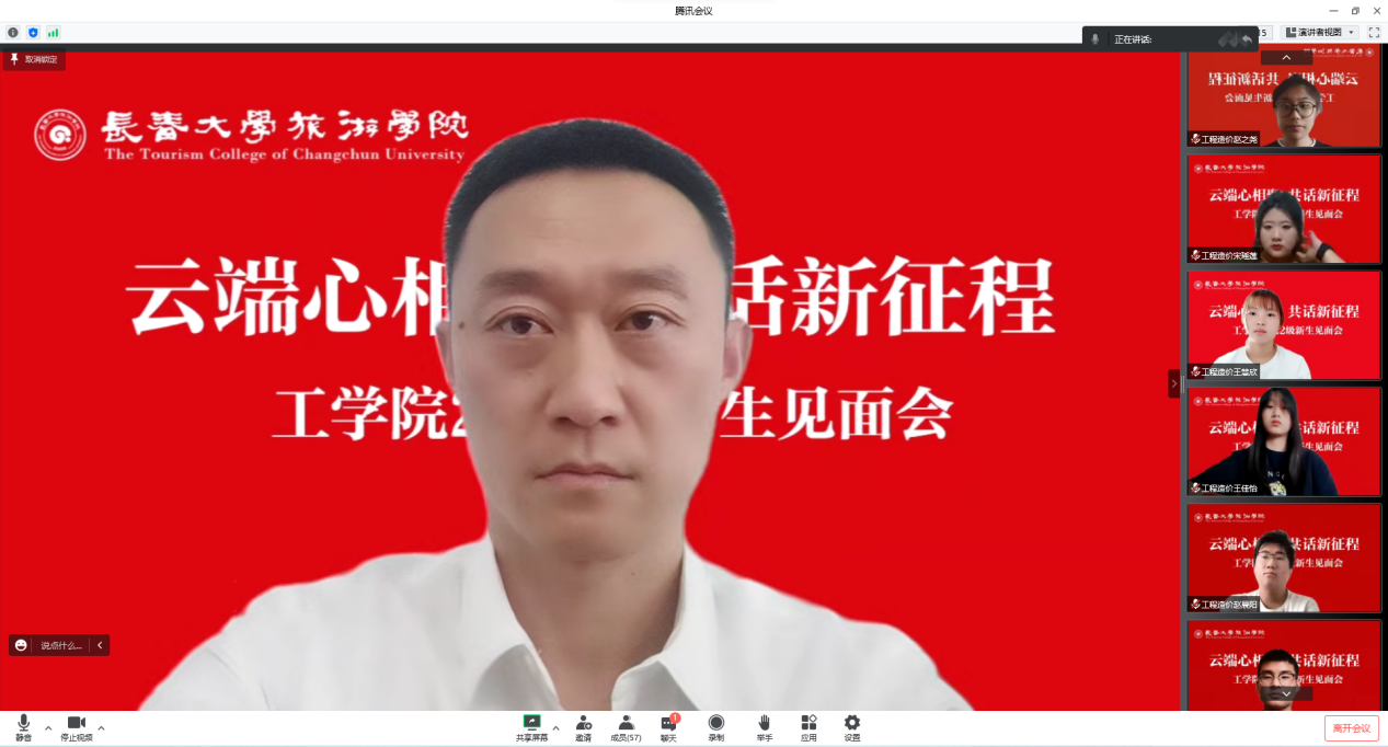 “十年寒窗终不负,一生韶华亦可期”,为了使新生尽快熟悉校园环境,适应大学生活,融入新的集体,9月5日,工学院2022级新生见面会在线上举行,工学院院长李晓东、党总支书记凤龙、副院长高峰、2022级新生辅导员侯云艳、刘畅以及2022级全体同学参加本次会议,会议由学生办公室主任奚亮主持。