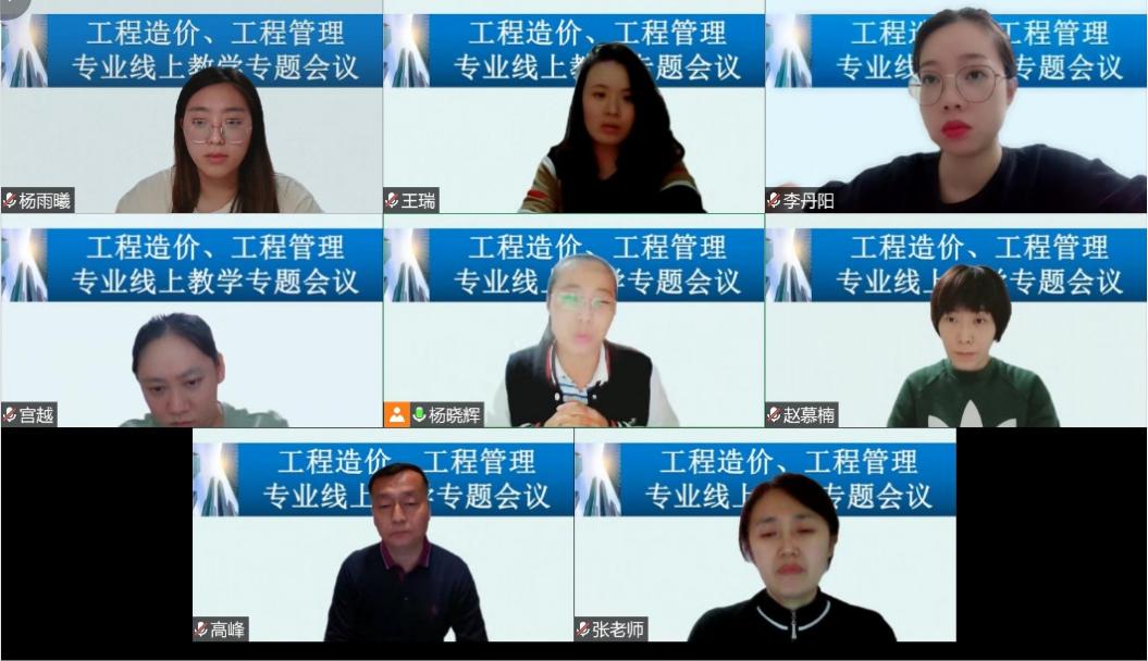 为进一步提升线上教学质量,我院工程造价与工程管理专业于9月6日联合召开了线上教学专题会议。本次会议由工程造价专业学科带头人高峰教授主持,工程管理专业学科带头人张求书、工程造价教研室主任杨晓辉及两个专业的全体专职教师参加了本次会议。会议主要部署了以下内容: