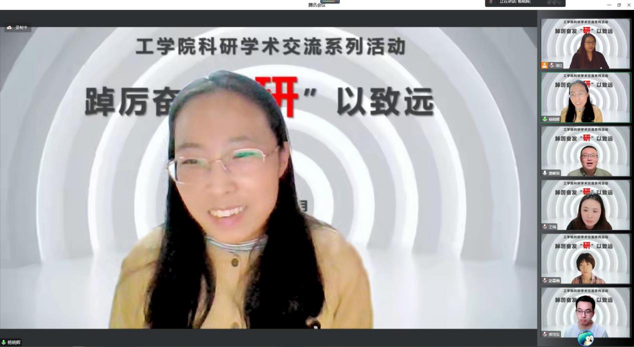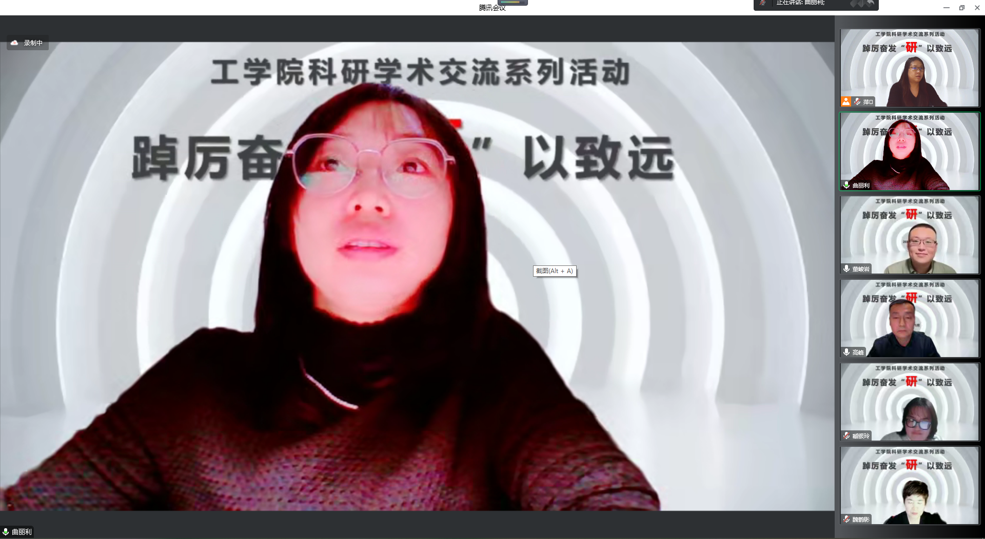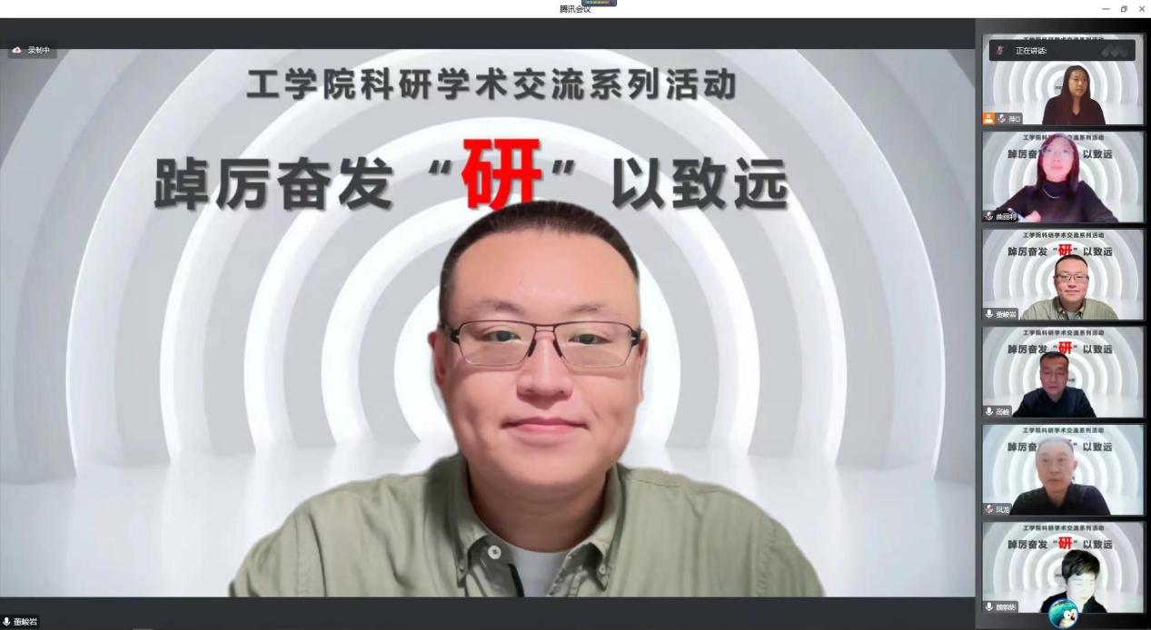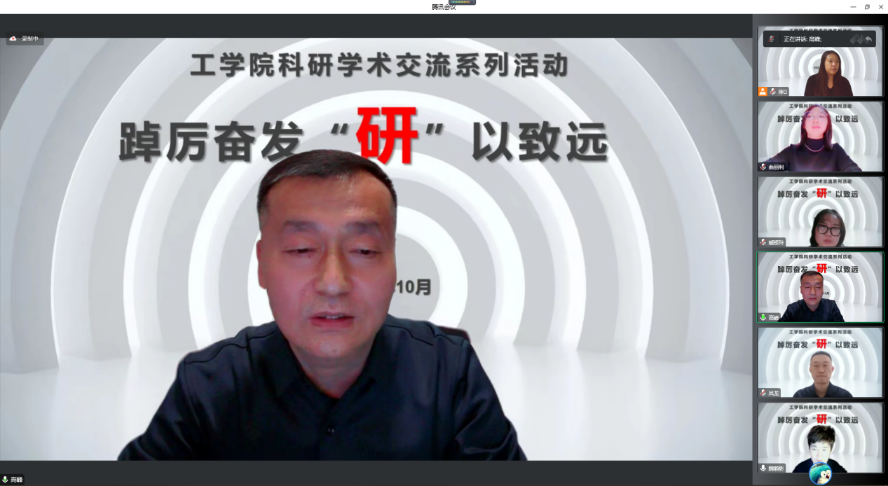 高峰作总结讲话。他表示,中青年教师要拓宽申报科研项目的思路,增强申报科研项目的信心,提高申报科研项目的积极性、主动性和创造性,提升青年教师科研创新和项目研究能力,助力学院内涵式发展。工学院将继续开展科研经验分享交流系列活动,中青年教师要积极参与,解决科研工作中遇到的困难,提高科研水平,突破科研瓶颈,为学校科研工作贡献力量。