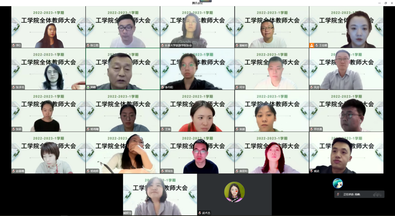 11月22日,工学院召开线上第八次全体教师大会,院长高峰、学院党总支书记凤龙、各专业带头人及工学院全体教师参加会议。高峰主持会议。