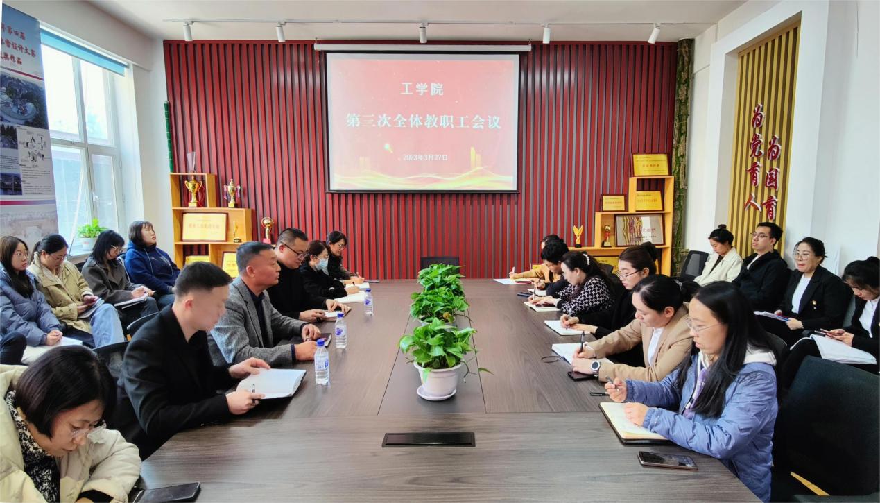 3月27日下午,我院在教学楼145党建活动室召开本学期第三次全体教职工大会。院长、书记、院长助理、专业带头人、教研室主任及全体教职工参加会议。会议由院长高峰主持。