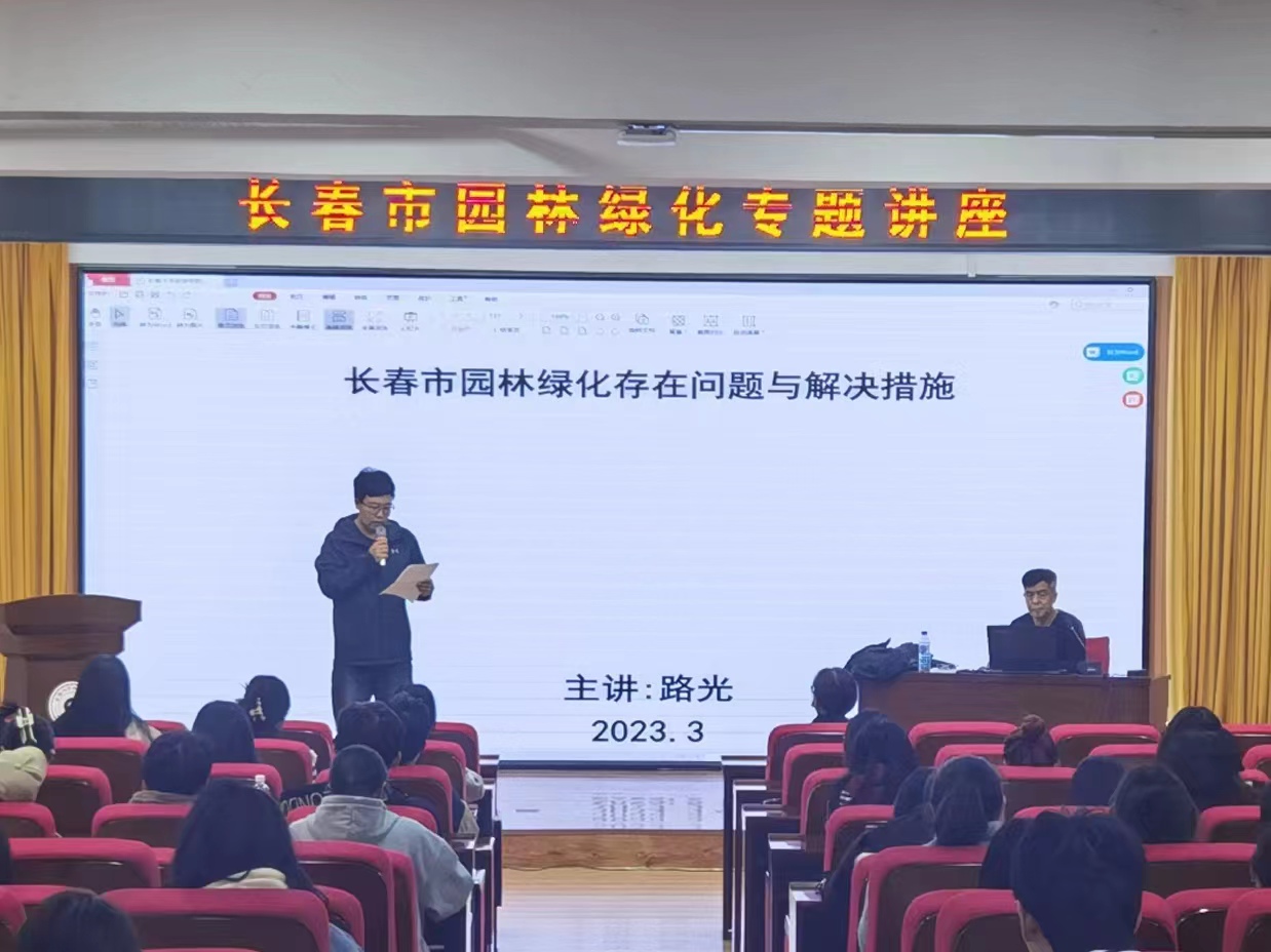 本次讲座特别邀请长春市园林科研所所长、长春市园林规划研究院总工程师路光高级工程师作为主讲嘉宾,为同学们带来主题为“长春市园林绿化存在问题与解决措施”的专题讲座。