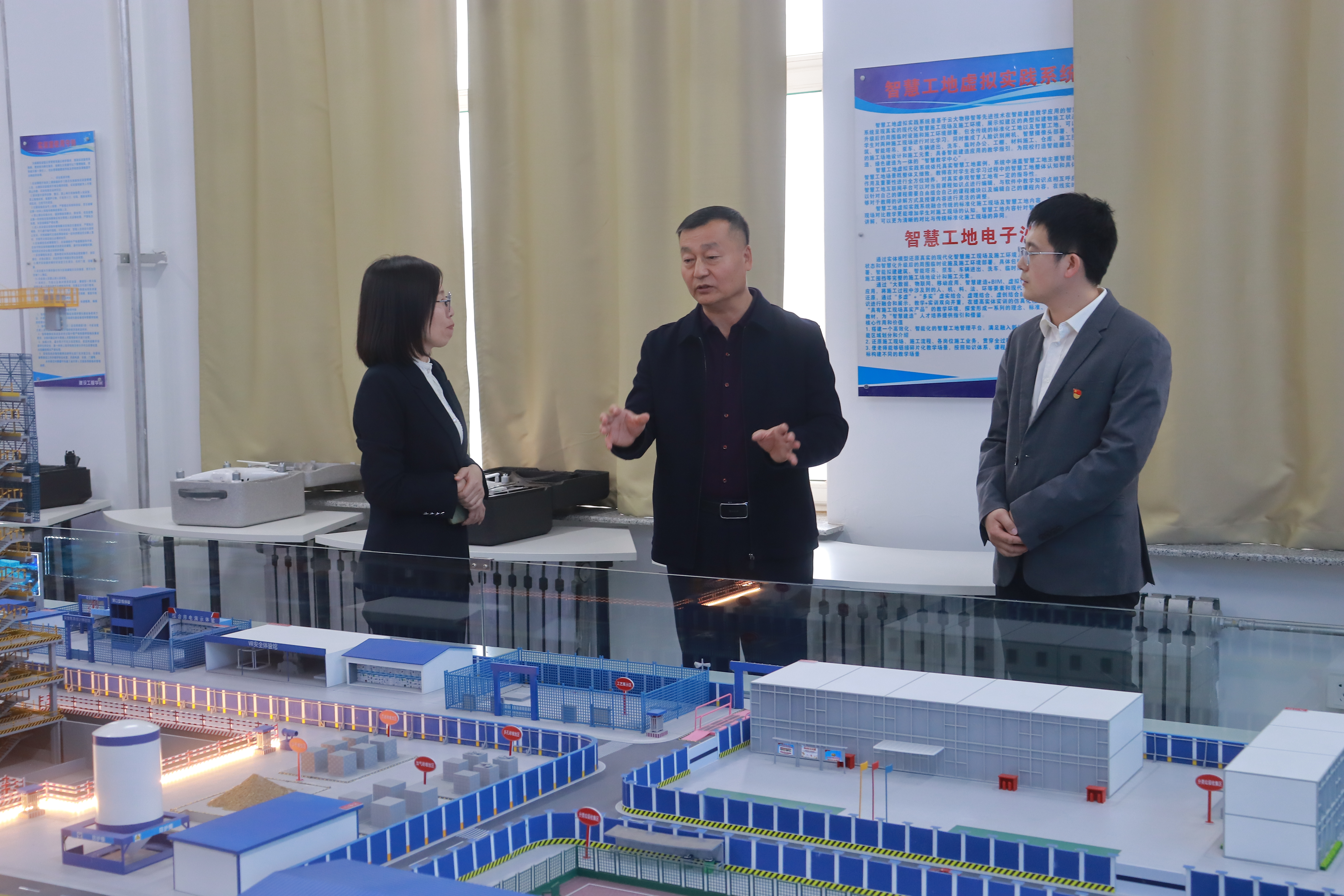 会后,调研组参观了长春工业大学人文信息学院建设工程学院智慧建造综合实训室、智能建造体验馆,了解该校在充分满足传统专业转型升级及智能建造新工科专业建设需求的前提下,为校企合作、科学研究等工作的开展创造了优越的条件,为金沙官网智能建造实训室的建设提供了新思路。