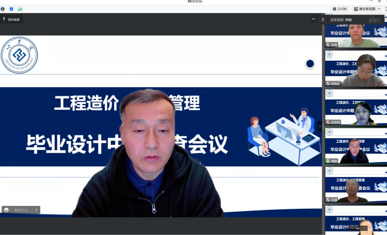 高峰首先强调毕业设计的中期检查是一个非常重要的环节,对学生进行指导和监督,确保学生能够按照规定的时间节点和要求,顺利的完成毕业设计。通过中期检查,协调解决毕业设计进度和质量中的问题,提出相应的建议和指导。