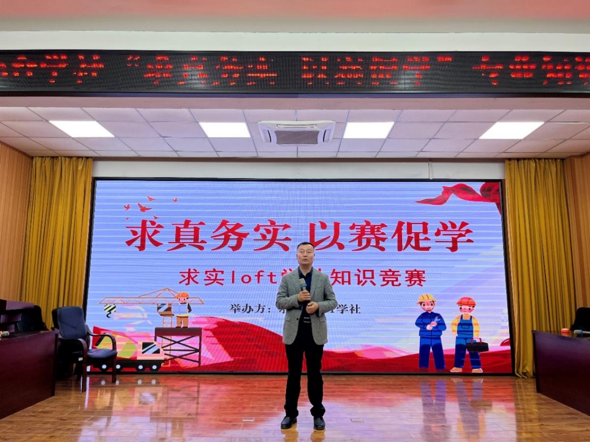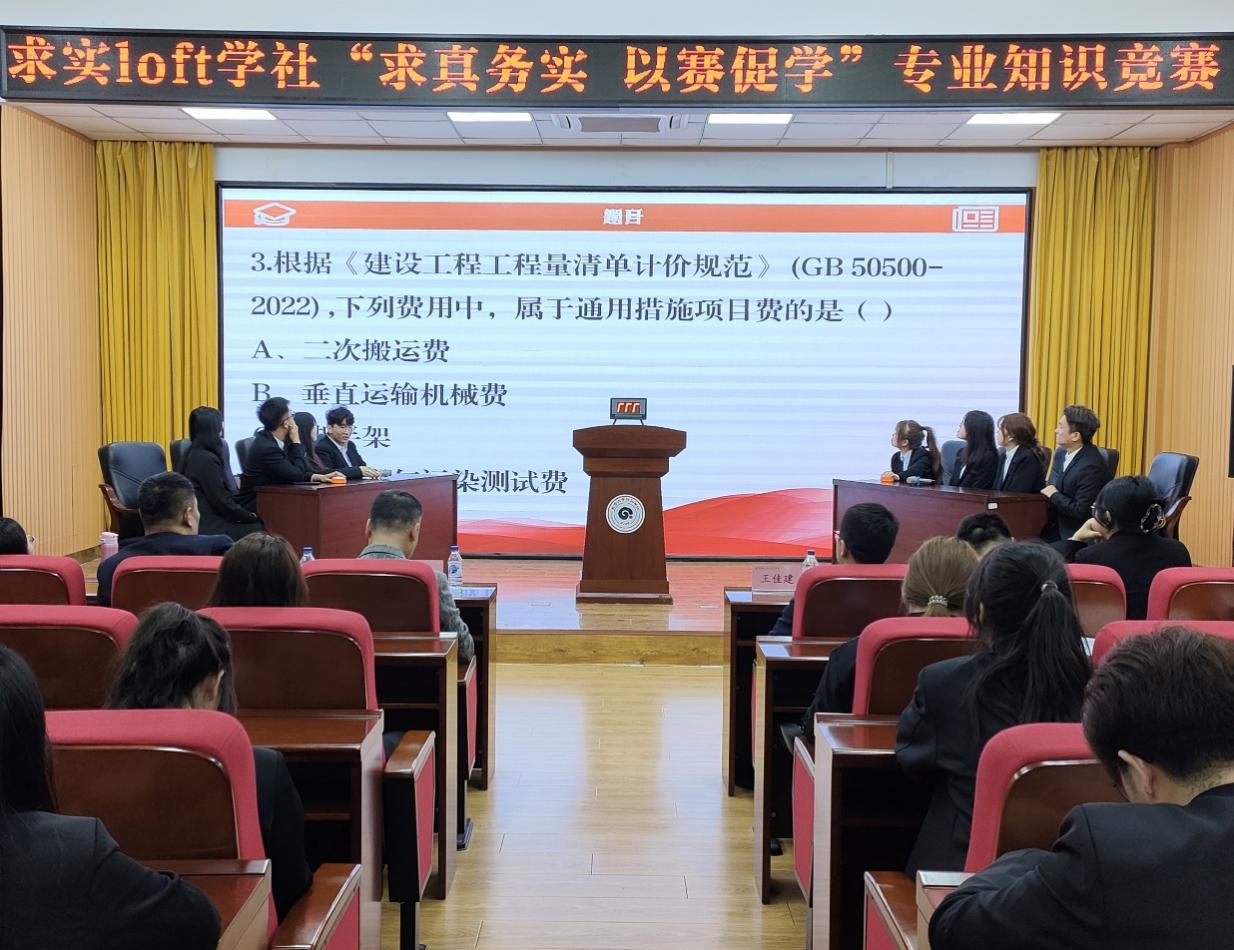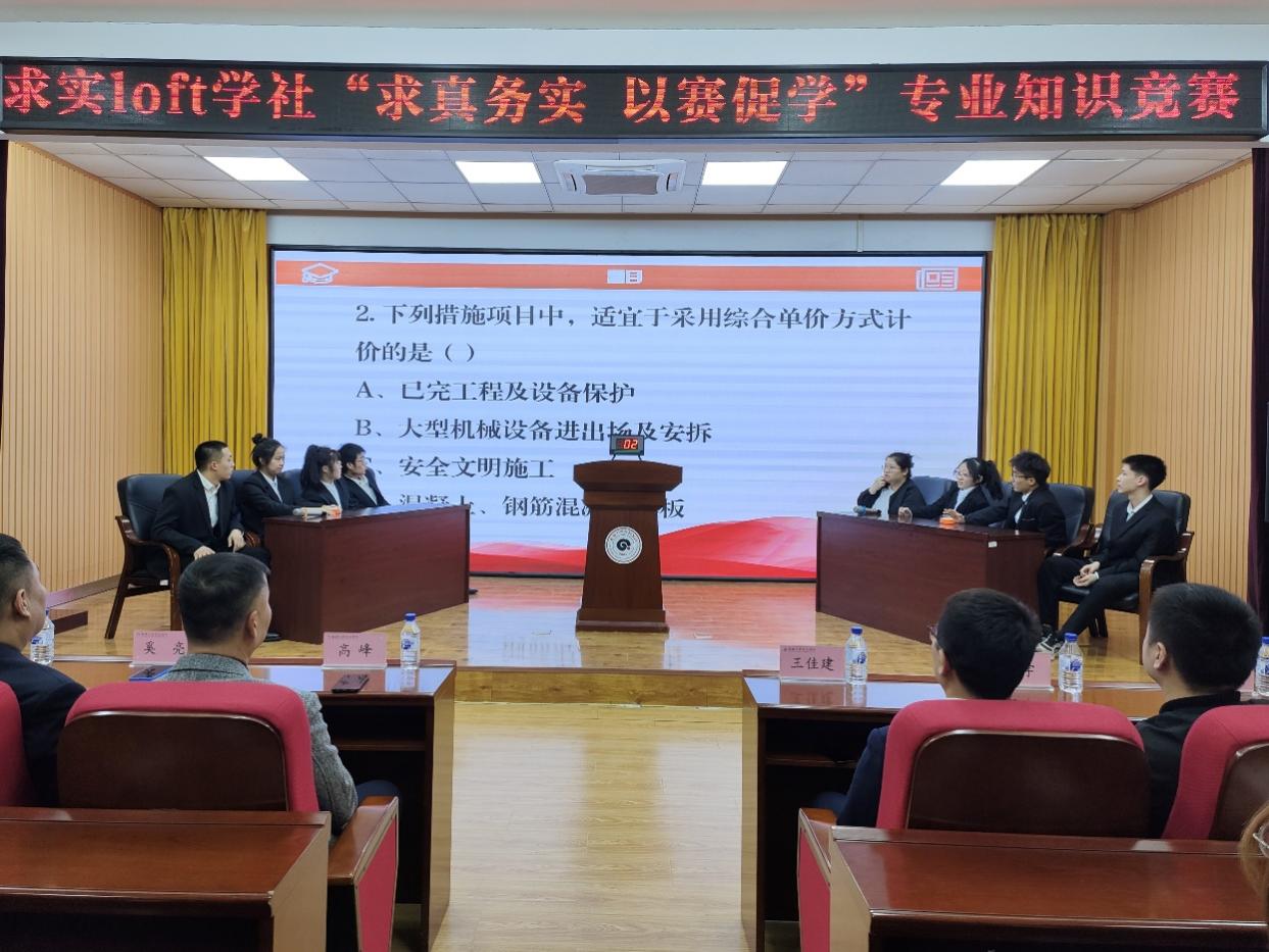 为营造良好的学院文化氛围,将知识储备与临场反应有机结合,充分调动同学们学习积极性,4月27日,工学院求实“loft”学社于教学楼筑梦报告厅举办“求真务实,以赛促学” 专业知识竞赛,吉林省求实建设软件有限公司校企事业部总监王佳建,职教事业部主任姚宇,金沙js9线路中心工学院院长高峰,团委书记奚亮,工程造价教研室主任杨晓辉和求实“loft”学社主席团出席本次竞赛。本次竞赛由李东翰和梁博主持。