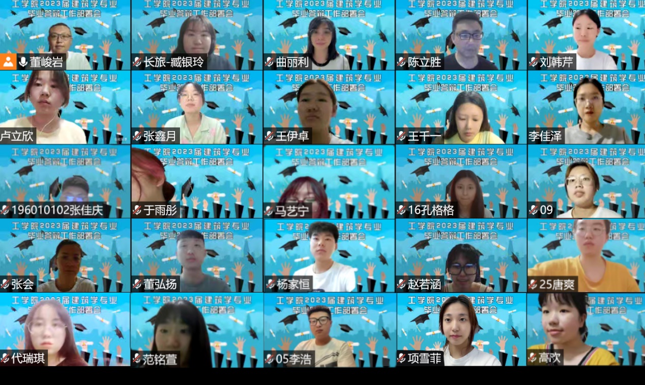 本科毕业设计不仅是对学生知识储备和综合实践能力的检验,也是学院人才培养方案的重要组成部分,更是保障学校教学质量体系的重要环节。此次线上会议的召开,使参会成员充分认识到毕业设计答辩工作的重要性,为我院2023届本科生毕业设计答辩工作的顺利开展奠定了良好的基础。