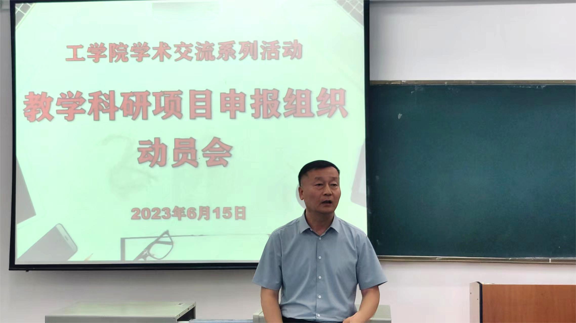 为提升学院科研水平,助力学校高质量发展,工学院于6月15日下午在教学楼417教室召开工学院教学科研项目申报组织动员会。会议由副院长董峻岩主持,院长高峰、各专业带头人及全体教师参加会议。