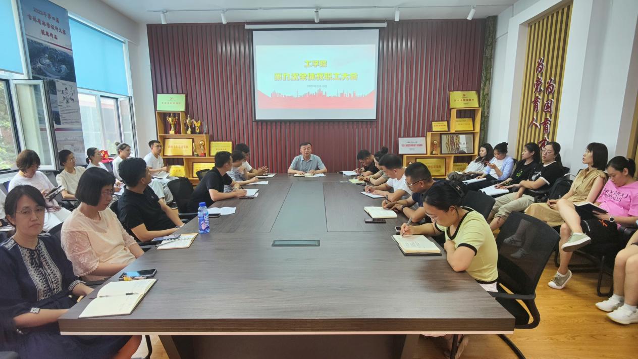 7月13日,工学院在党建活动室召开第九次全体教职工大会。院长高峰、党总支书记凤龙、各专业带头人及全体教职工参加会议。高峰主持本次会议。