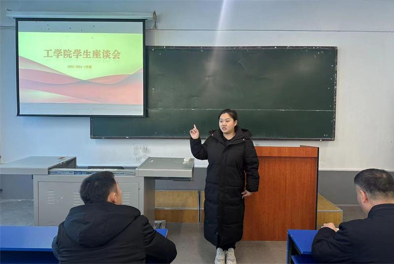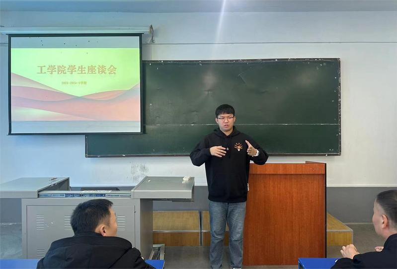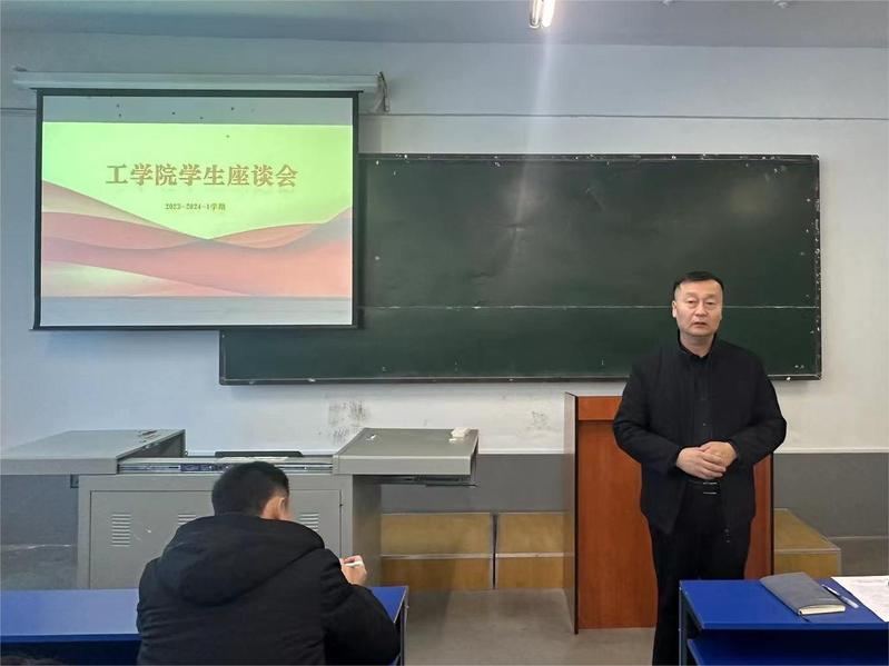 为进一步深入开展调查研究,了解学生专业学习、课余生活等方面的需求,解决学生急难愁盼的具体问题,提高工学院教育教学质量,推动学院高质量发展,11月27日,工学院院长高峰、党总支书记凤龙、副院长董峻岩、各专业带头人、辅导员老师会同学校教务处、教学监督办公室、基础部等相关职能部门代表在414教室召开工学院2023-2024学年第一学期学生座谈会,师生代表近70余人参加调研座谈,副院长董峻岩主持本次座谈会。