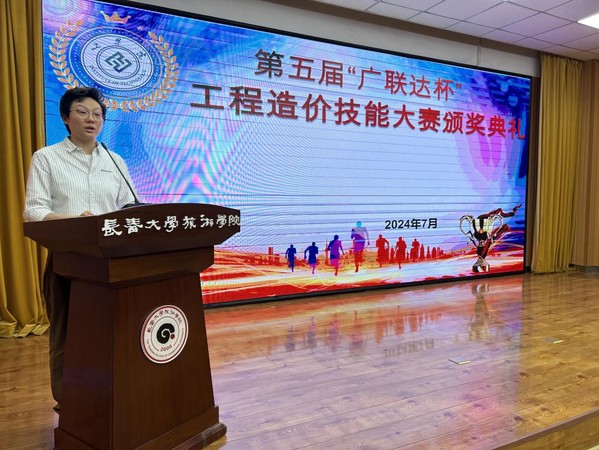 近日,工学院举办了第五届“广联达杯”工程造价技能大赛、和“求实杯”建筑CAD技能大赛。7月8日,在学校筑梦报告厅举办了两场比赛的颁奖典礼。学院特别邀请广联达科技股份有限公司数字教育事业部吉林省总经理彭阁、吉林省求实建设软件有限公司副总经理赵亮、校企事业部总经理焦明晶、校企事业部总监王佳建共同见证这一重要时刻。工学院院长高峰、副院长董峻岩、团委书记奚亮、工程管理专业带头人赵慕楠以及学院师生代表共计120人参加本次颁奖典礼。颁奖典礼由工程造价专业教研室主任杨晓辉主持。