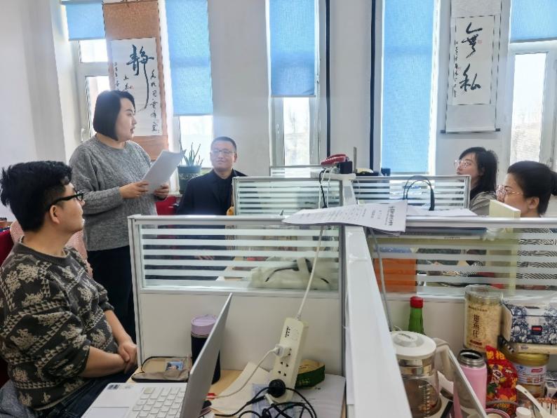 专业教师臧银玲发言,其他教师认真聆听