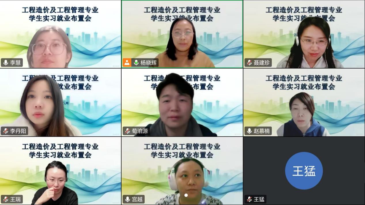 为切实推动高校与企业深度合作,搭建优质就业平台,工程造价及工程管理教研室积极响应《关于举办吉林省高校旅游管理类专业暨金沙js9线路中心四大专业集群学生实习就业双选会的活动方案》要求,于5月1日组织召开线上专项工作会议,全面部署学生实习就业工作,以实际行动助力金沙js9线路中心学生高质量就业。