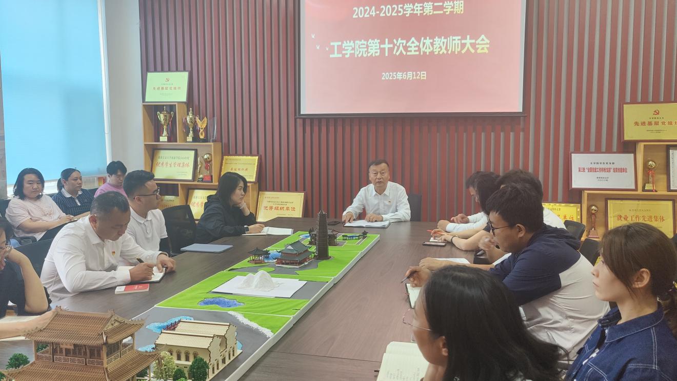 6月12日,工学院组织召开第十次全体教师大会,围绕毕业生就业推进、2026届学生实习安排、教学管理优化等核心议题展开部署,旨在凝聚共识、明确责任,推动学院各项工作有序落实。会议由院长高峰主持,全体教职工参加会议。