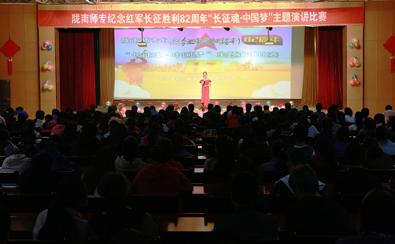 忆峥嵘岁月,扬长征精神。10月31日晚,beat365纪念红军长征胜利82周年“长征魂·中国梦”主题演讲比赛在北校区礼堂举行。党委组织部部长蔺兴龙、党委宣传统战部部长张益斌、教务处负责人潘文生、保卫处负责人李德明,各学院分管学生工作领导、辅导员及学生代表400余人观看了比赛。国家级普通话水平测试员郭进明,党委学工部(处)负责人李晓江、副处长武燚,团委兰青,党委宣传统战部高建国等5位教师应邀担任评委。