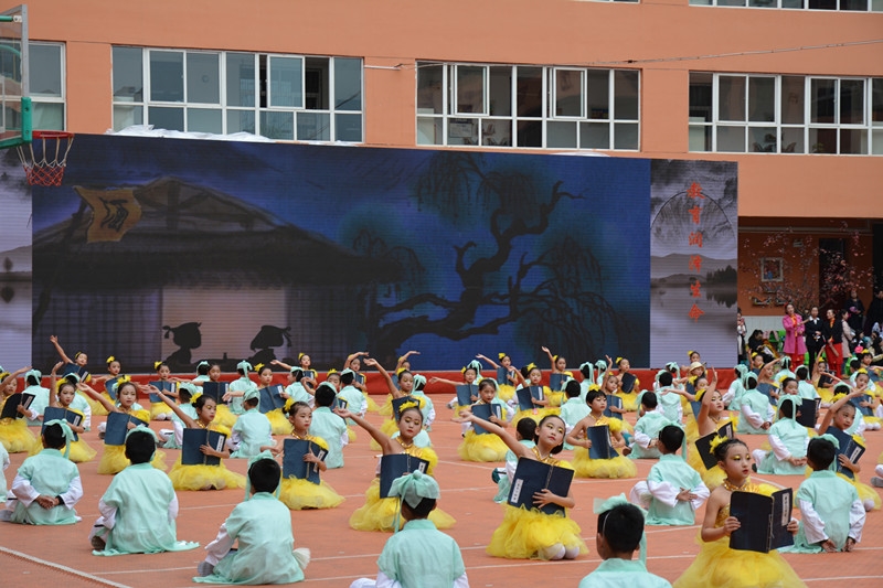 下午,在雄浑的中华鼓乐中,成县西关小学举行“童心绽放 梦想起航” 师生主题文艺展演。展演分“鼓舞盛世,喜迎嘉宾”、“书香校园,文化滋养”、“强健体魄,扇舞东方”、“岁月无痕,活色生香”、“红色经典,使命传承”、“博古通今 展现自我”,共一序五篇章。展演充分展示了西关小学师生的精神风貌和生命教育的成果,为参会代表送上了一份有品位的文化大餐。参会代表感受了“书香校园”的独特魅力和生命教育的生动精彩。