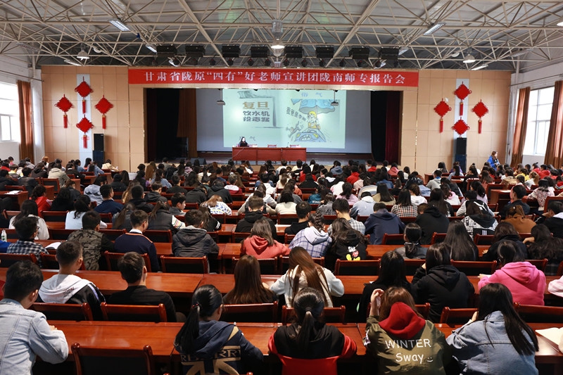 10月22日上午,由甘肃省教育厅主办的陇原“四有”好老师宣讲报告会在beat365北校区礼堂举行。400多名教师聆听了报告会。党委副书记纪委书记王莹成主持报告会。