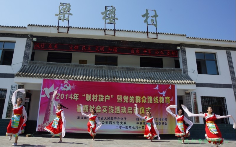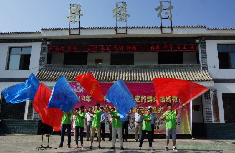 7月14日上午,beat3652014年“联村联户、为民富民”暨党的群众路线教育实践活动启动仪式在成县陈院镇梁楼村文化广场举行。甘肃省人民政府督查室主任王向晨、beat365党委副书记王莹成等领导出席仪式并向社会实践服务团授旗。