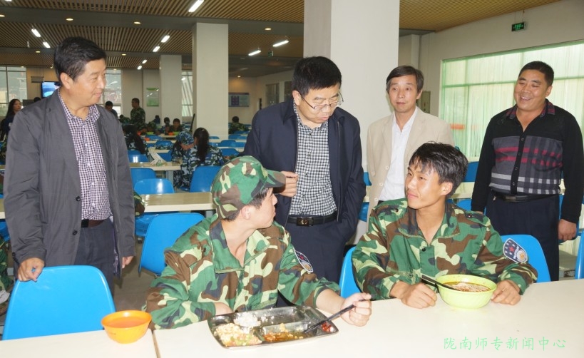 校长刘先春和就餐同学亲切交谈