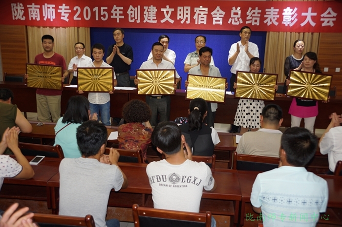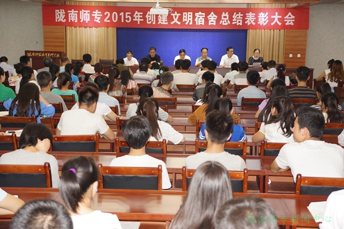 会上学生处副处长武燚同志宣读了《关于表彰创建文明宿舍先进集体和先进个人的决定》,随后,创建文明宿舍先进集体农林技术学院、文史学院、地理系和文明宿舍学生代表分别做了大会交流发言。