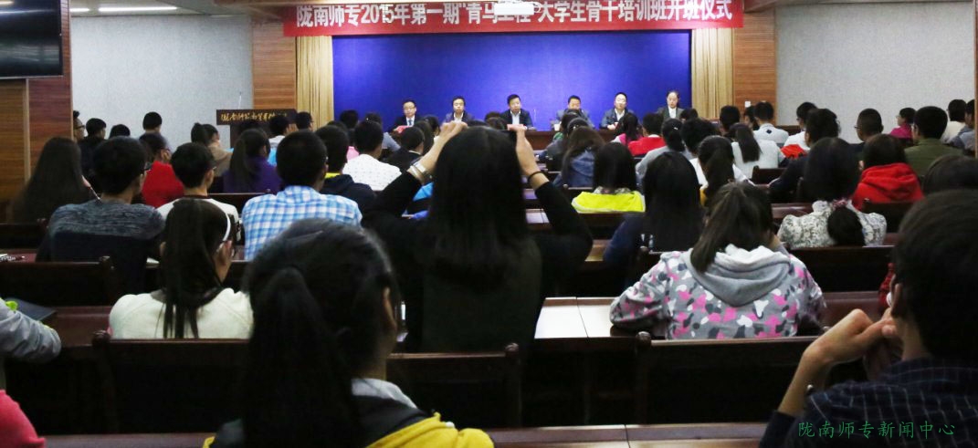 团委副书记、业余团校校长张明会宣读了《关于举办陇南师专2015年第一期“青马工程”大学生骨干培训班的通知》;培训班班主任张儒奎老师宣读了培训要求和培训纪律;培训班学员代表白怡作了表态发言。