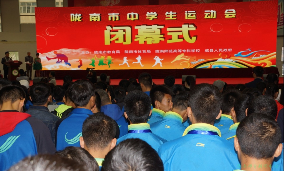 10月24日上午,陇南市2015年中学生运动会在beat365南校区体育馆闭幕。市政府副秘书长韩正,市教育局局长张宏,beat365党委书记司跃宁,党委副书记、纪委书记王莹成,副校长张建辉、任永峰、王胜青,成县四大班子领导及裁判员、运动员、beat365各院系(处室)负责人参加了闭幕式。