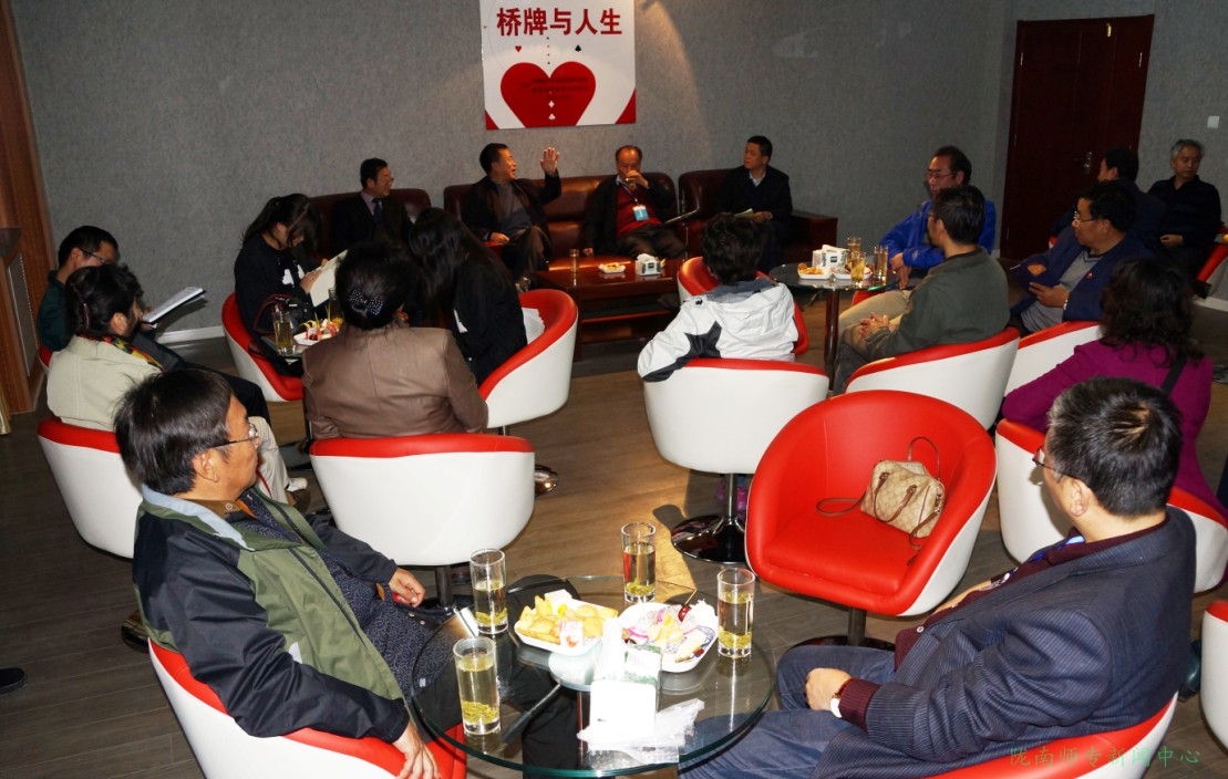 甘肃省大中专院校桥牌协会主席张方明教授、兰州交通大学工会主席孙爱良、甘肃省桥牌大师辛玉红及2015年甘肃省大中专院校桥牌邀请赛参赛队员各抒己见、畅所欲言,从桥牌运动的益智性、公平性、协调性、蕴含的国民性等方面畅谈了桥牌与人生的关系,并对桥牌运动在大中专院校的开展提出了建议:先推广,后普及,再提高。