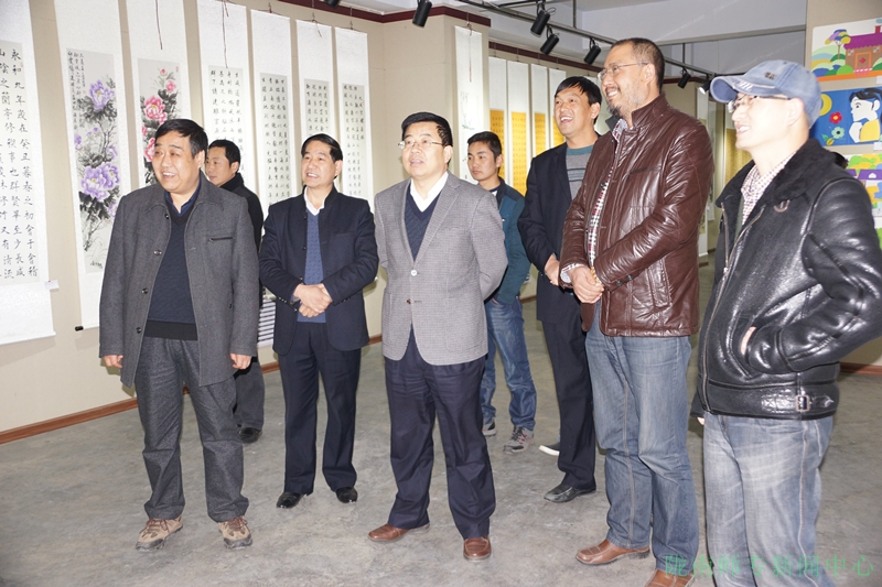 12月7日下午,校长刘先春在党委委员王录全及学校办公室、学生处、美术系等部门负责人陪同下深入3号教学楼3楼美术系展厅参观学生公寓文化美术作品展。