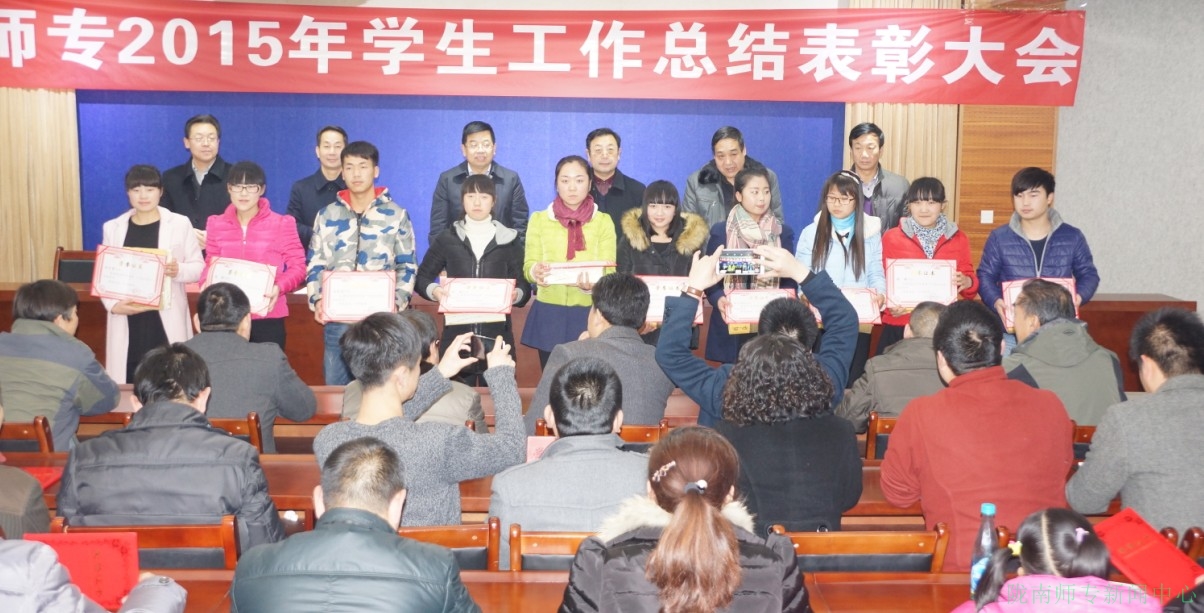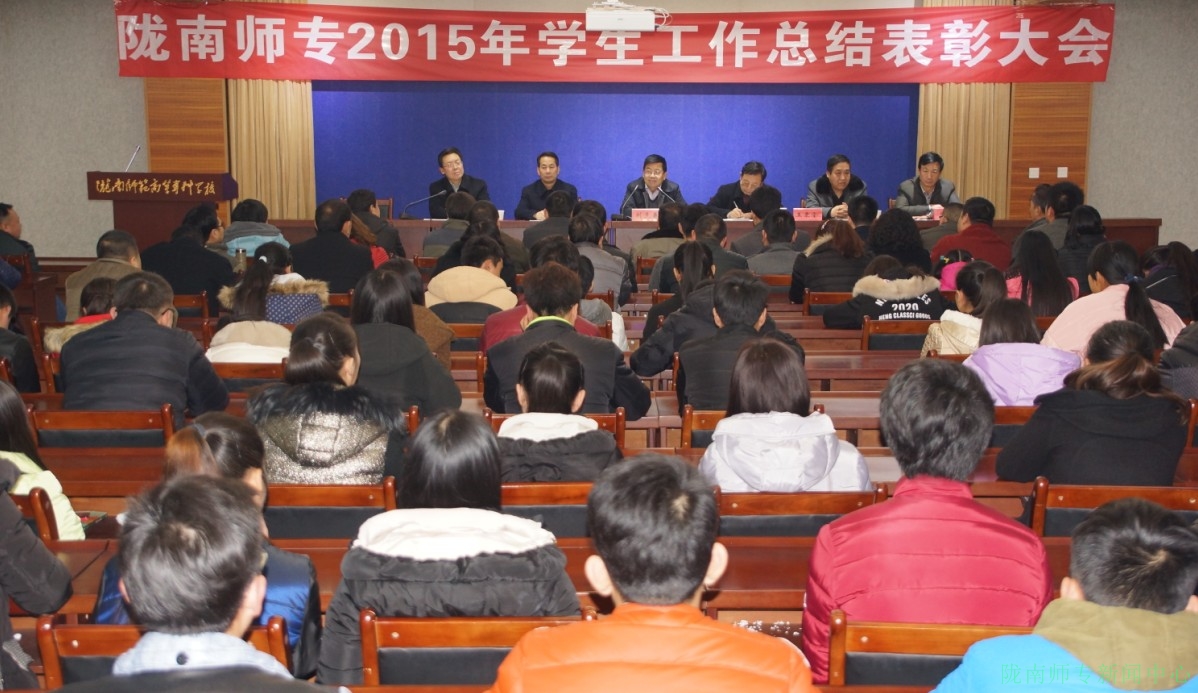 张建辉、王胜青、张勇分别宣读了《关于表彰先进班集体及个人的决定》《关于表彰陇南师专“十佳大学生”的决定》和《关于表彰2015年优秀辅导员的决定》。