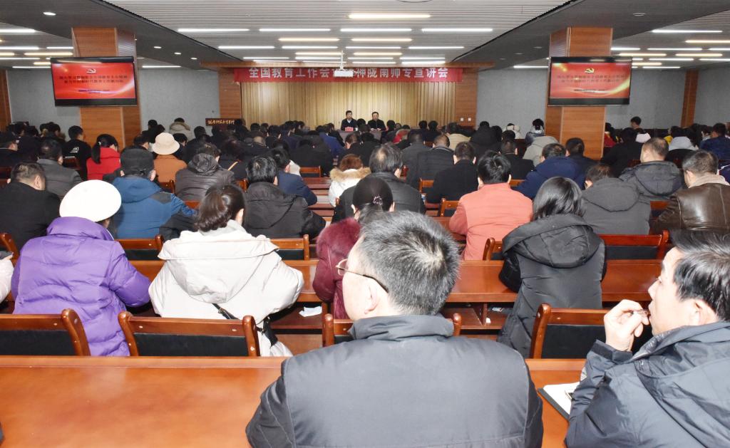 1月8日下午,校长刘先春教授在大学生活动中心宣讲全国教育大会精神,要求全校师生深入学习贯彻落实全国教育大会精神,奋力开创新时代教育工作新局面。党委副书记、纪委书记王莹成,副校长张建辉、王胜青、王录全、张勇出席报告会,全体中层干部及部分教师学生代表参加了报告会。王莹成主持报告会。
