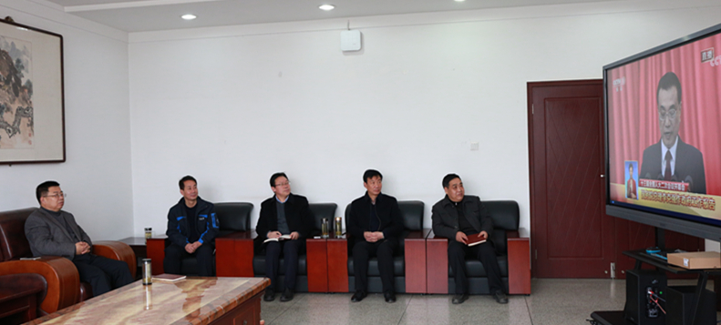 3月5日上午9时,十三届全国人大二次会议在北京人民大会堂开幕。校长刘先春,副校长张建辉、王胜青、王录全、张勇在办公楼三楼307会议室集中收看开幕会。