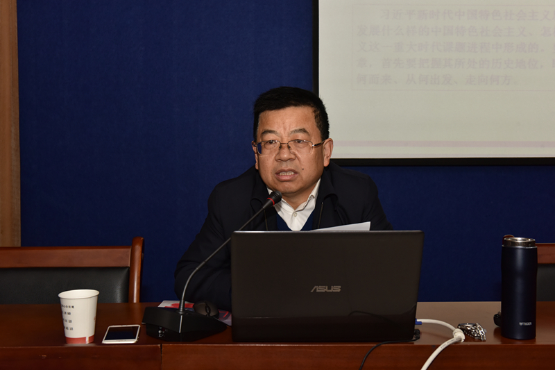 在题为《中国特色社会主义新时代》的讲座中,刘先春教授开宗明义,简明扼要阐释了什么是新时代及我们如何面对新时代。他理论联系实际,援引当前两会热点,从十大历史性成就和五大历史性变革及历史性影响等三个方面详细分析了中国特色社会主义进入新时代的根据。