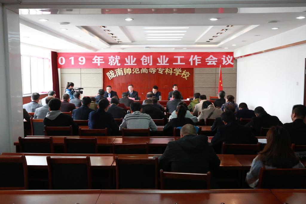 3月19日下午,学校在办公楼三楼会议室召开2019年就业创业工作会议。甘肃省人社厅人才市场档案管理部部长姚力锋,校长刘先春,副校长张建辉、王胜青出席会议,择业指导处、学生处、教务处、团委等部门负责人,各学院院长、党总支书记、分管就业创业工作领导、辅导员参加了会议。会议由张建辉主持。