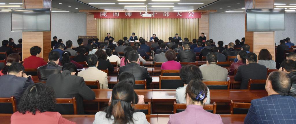 4月4日下午,beat365召开干部大会宣布省委关于学校党委书记的任职决定。省委组织部副部长、省委非公有制经济组织和社会组织工作委员会书记马晓晴,省委组织部干部三处处长王之臣,陇南市委组织部副部长、市委非公有制经济组织和社会组织党工委书记李军征出席大会。全体校领导、中层干部、副高职称以上教师共300多人参加了大会。大会由校长刘先春主持。