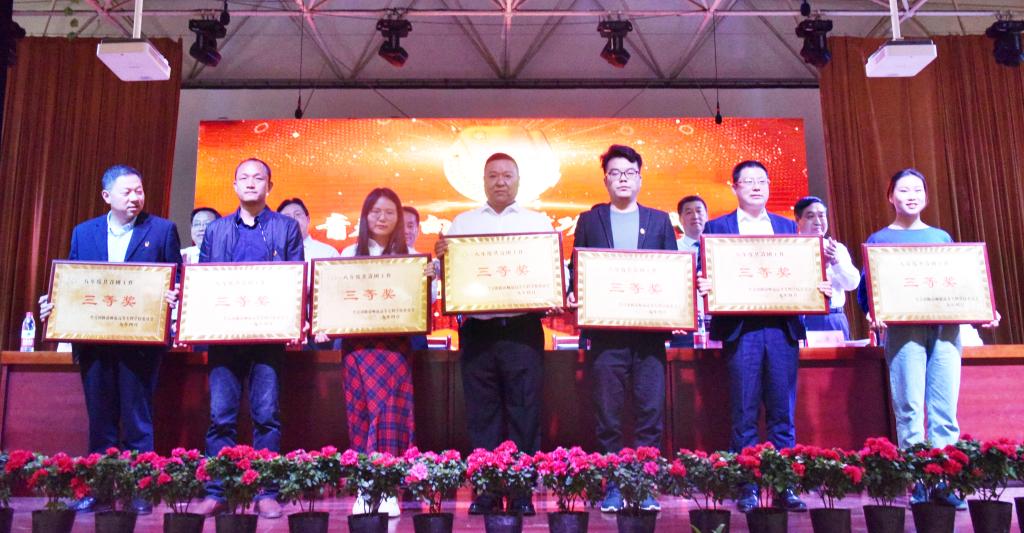 学校领导为先进集体和个人代表颁奖。