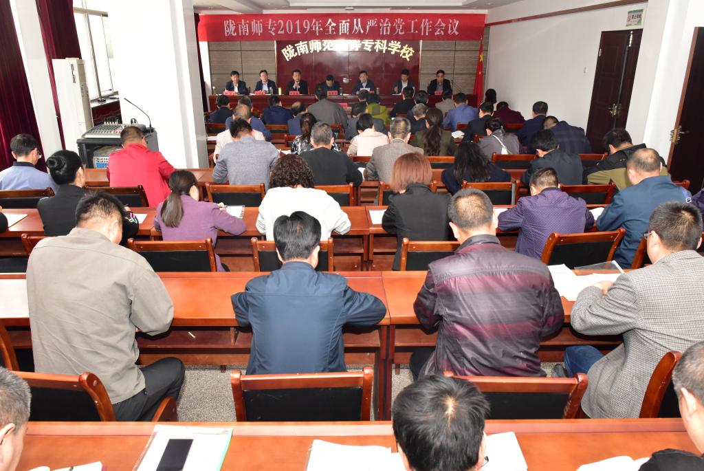 2019年是新中国成立70周年,是学校夯实升本基础、推进质量建设的重要一年。加强全面从严治党工作是推进学校一切工作上水平、提质量的政治保证,责任重大、意义深远。对如何进一步加强和推进学校全面从严治党工作,他提出了四点建议。一是以党的政治建设为统领,坚决把讲政治贯穿于全面从严治党和办学治校的全过程。我们要坚持把党的政治建设摆在首位,严明政治纪律和政治规矩,严肃党内政治生活。二是以党的思想建设为引领,自觉把习近平新时代中国特色社会主义思想用于武装头脑和推动工作。我们要进一步强化理论武装,严格落实立德树人根本任务,牢牢掌握意识形态工作的主导权。三是以党的组织建设为基础,为学校事业发展打造坚强的执政基础和人才队伍。我们要深化拓展党支部“五化”建设,深入实施“基层党建质量提升工程”,持续加强干部队伍和人才队伍建设。四是以强化责任担当为抓手,扎实推进全面从严治党向纵深发展。学校全面从严治党的总体要求和主要任务已经明确,全校上下要确保政策执行到位、落实到位。我们要发扬钉钉子精神,以奋发进取的精神状态,把中纪委省纪委精神、中央八项规定精神和相关要求及学校全面从严治党的要求落实到位。