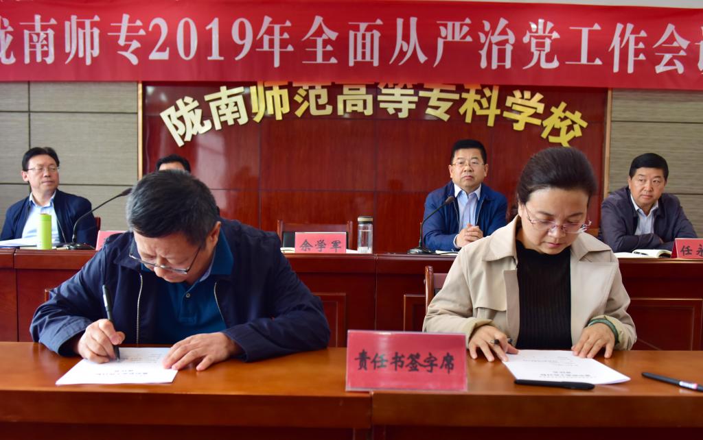 党委书记余学军代表学校与学院党总支书记及部门负责人签订了《党建工作目标管理责任书》《意识形态工作目标责任书》《党风廉政建设目标管理责任书》,并作了讲话。他指出,