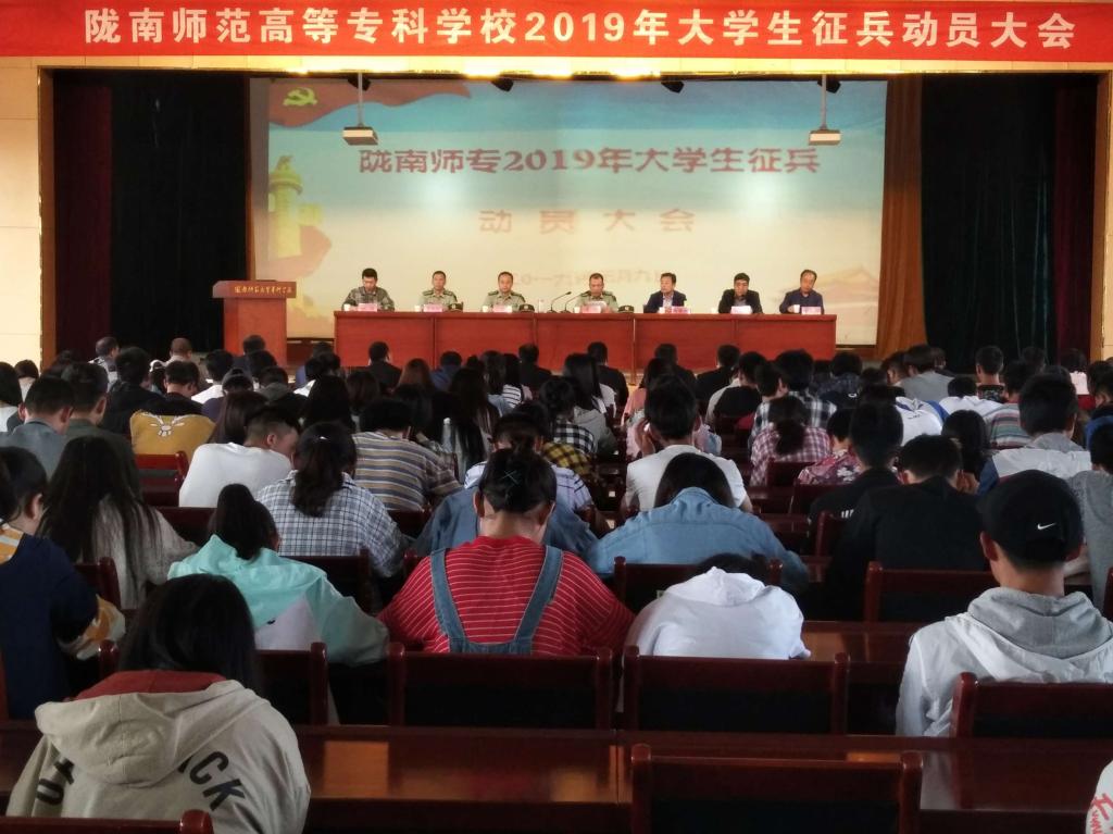 5月9日下午,beat365在北校区礼堂召开2019年大学生征兵工作动员会,陇南市征兵工作办公室主任、陇南市军分区副司令员李银,校党委副书记、纪委书记王莹成,成县人民武装部、学校征兵工作站、党委宣传统战部、团委负责人,各学院分管学生工作负责人、征兵专人、学生代表等300余人参加了会议。副校长王录全主持会议。