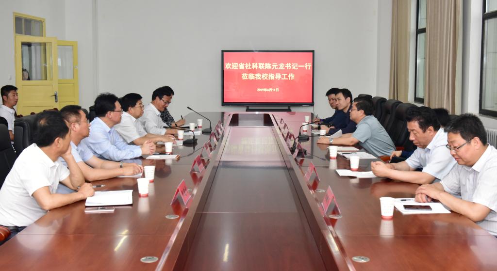 6月11日下午,甘肃省社科联党组书记、副主席陈元龙和副巡视员席皓琳、秘书长兼办公室主任严小明、学术部副部长马海忠,在陇南市社科联主席李宗明、综合科副科长郑鹏飞陪同下来beat365调研。校长刘先春、副校长王胜青,科研外事处、马克思主义学院、文学与传媒学院、历史文化与旅游学院负责人出席调研会。
