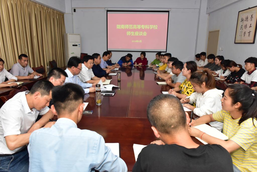 为深入贯彻落实《中共教育部党组关于加强和改进高校领导干部深入基层联系学生工作的通知》(教党函〔2019〕34号)文件精神,6月11日晚,校长刘先春在办公室四楼会议室主持召开学生座谈会。副校长王胜青、王录全,学校办公室、党委宣传统战部、教务处、学生处、后勤处、团委负责人及学生代表共30多人参加了座谈会。