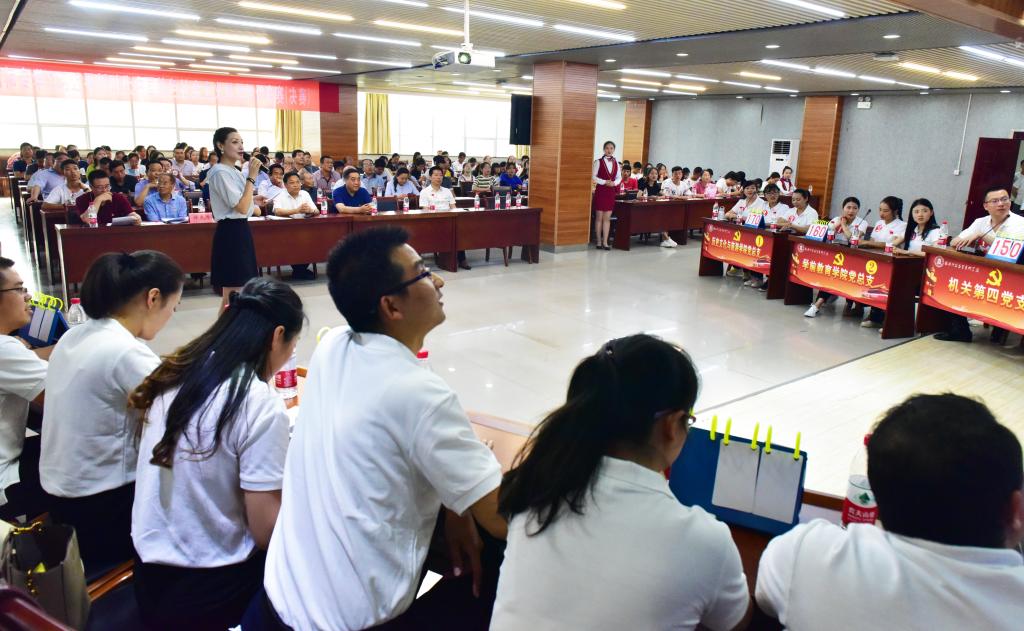 知识竞赛分为初赛和决赛,学校24个基层党组织通过初赛决出八支代表队参加今天的决赛。竞赛设三个环节,分别是必答题、抢答题和风险题。