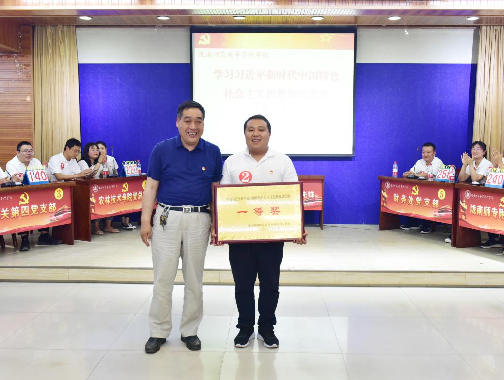 决赛中,现场气氛活跃,选手答题积极、认真,不但展现了良好的精神面貌,还展现了丰富的理论素养。为了增添乐趣缓解比赛的紧张氛围。中间插入了互动环节,还为参与互动的观众,准备了礼品。经过各代表队、选手们的激烈角逐,财务处党支部代表队获得一等奖,机电工程学院党总支、附属实验学校党支部获得二等奖,机关第三党支部、机关第四党支部、历史文化与旅游学院党总支、农林技术学院党总支、学前教育学院党总支获得三等奖。