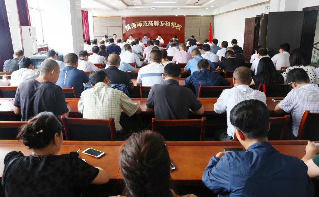 8月31日下午,学校召开新学期工作部署会。学校领导余学军、刘先春、王莹成、张建辉、任永峰、王胜青、王录全、张勇及全体中层干部参加了会议。党委书记余学军主持会议。