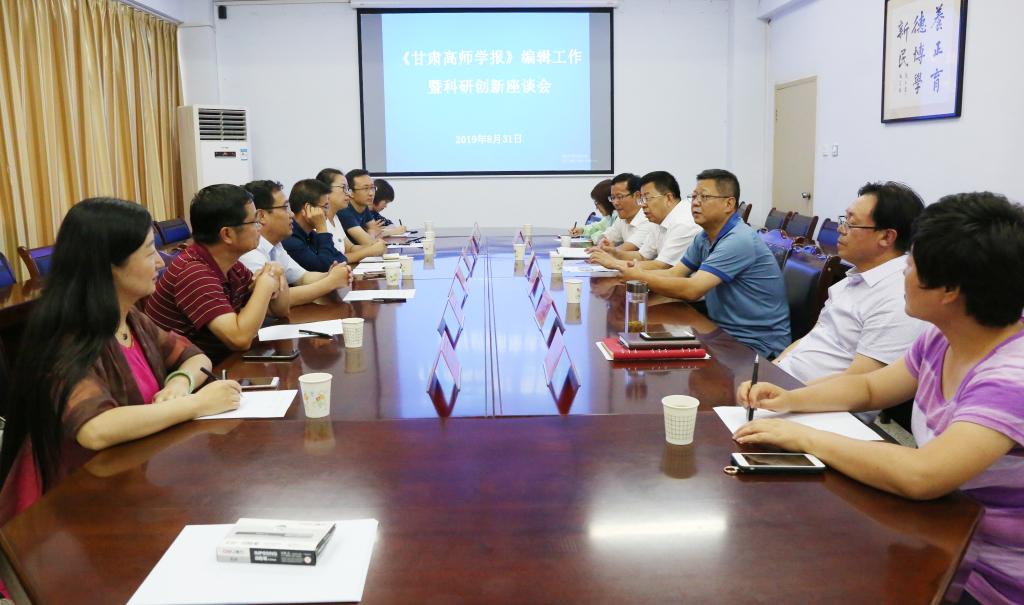8月31日下午,《甘肃高师学报》编辑工作暨科研创新座谈会在beat365办公楼四楼会议室召开。兰州城市学院副院长兼学报主编莫超教授、科技处处长赵廷刚教授等一行9人和beat365党委书记余学军、校长刘先春教授、副校长王胜青教授及科研外事处处长蒲向明教授等6人出席座谈会。