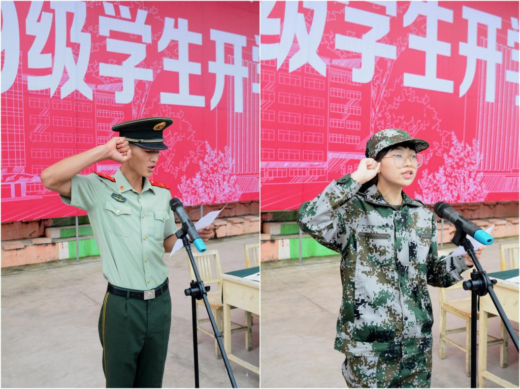 军训教官代表马全登、学员代表韩璐依次发表了激昂精炼、铿锵有力的誓言。