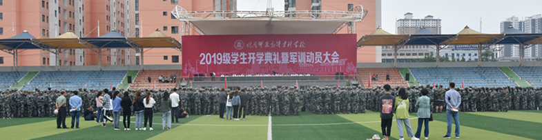 金秋送爽,军旗飘扬。9月8日上午,学校在南校区田径场隆重举行2019级学生开学典礼暨军训动员大会。党委书记余学军、校长刘先春,副校长张建辉、任永峰、王胜青、王录全、张勇,武警陇南支队参谋部作训股股长彭卫星,各学院、处室负责人出席大会。承担军训任务的武警陇南支队教官,各学院辅导员以及2019级全体学生参加了大会。大会由余学军主持。
