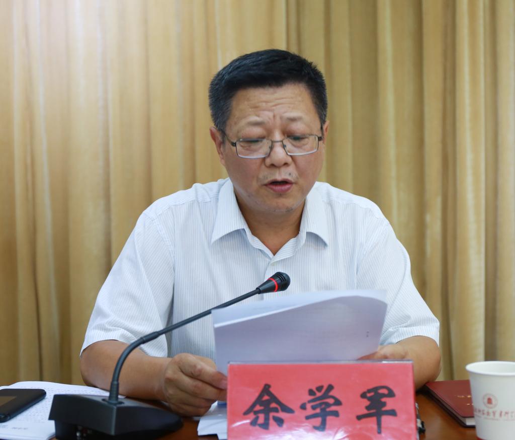余学军传达了习近平总书记在中央“不忘初心、牢记使命”主题教育工作会议上的重要讲话精神和中央、省委有关会议精神。