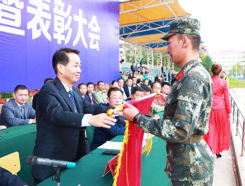 张建辉代表学校向武警陇南支队赠送了锦旗。