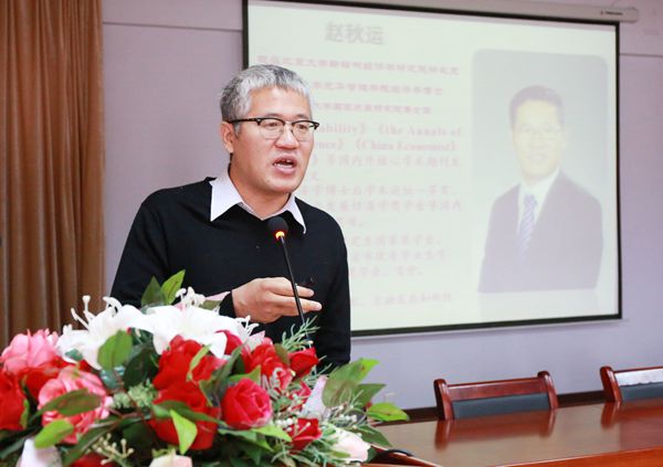 9月20日,应学校邀请,北京大学新结构经济学研究院企业发展部学术副主任赵秋运研究员来校进行学术交流,在电商学院三楼多功能厅做了题为《不忘初心,追逐梦想:我的经济学之梦》的专题报告,全校200多名师生到会聆听了报告。