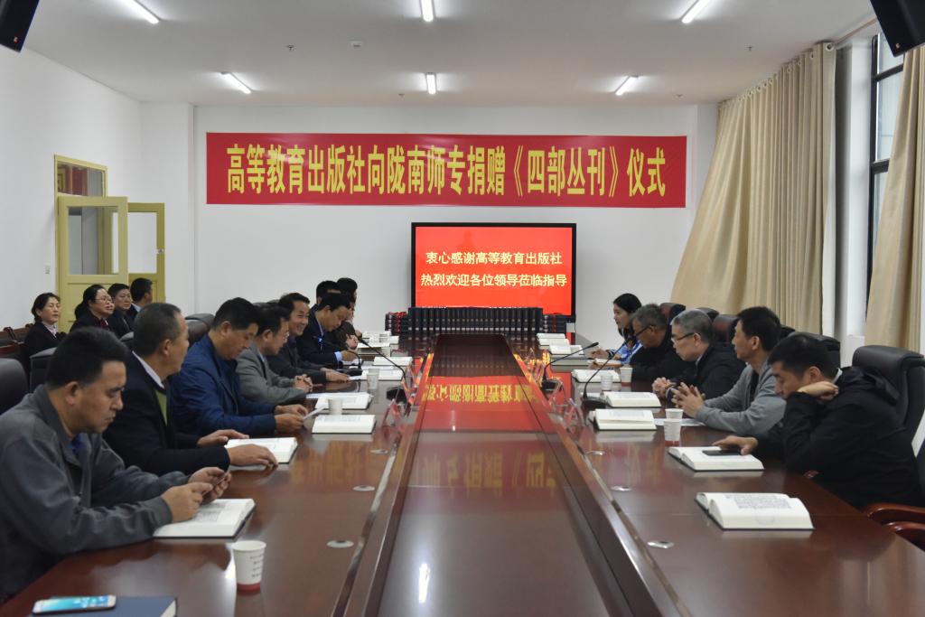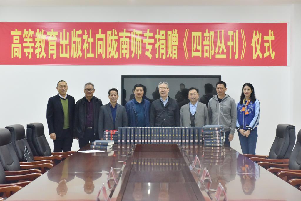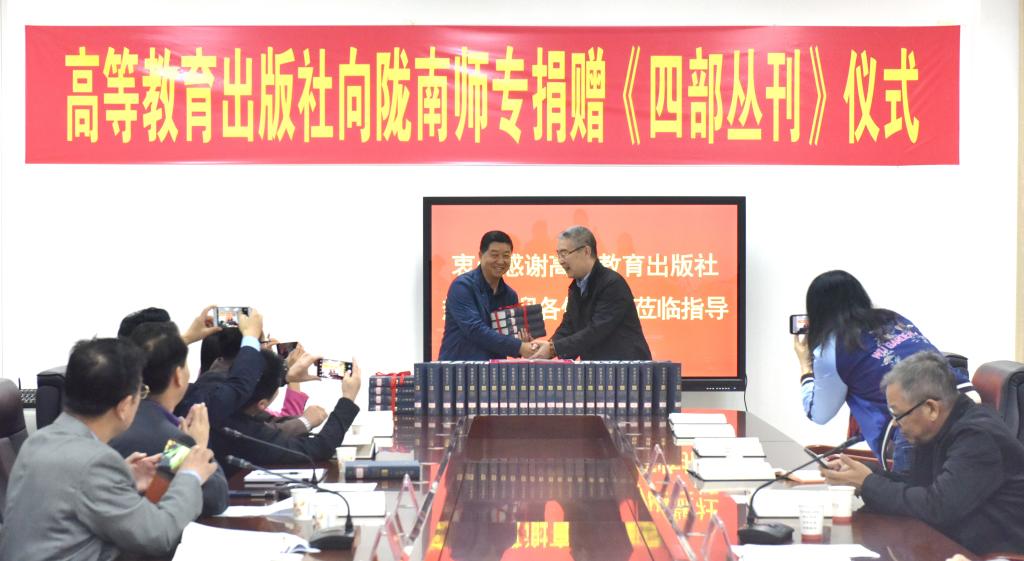 10月15日上午,高等教育出版社向beat365捐赠《四部丛刊》交接仪式在图书馆举行。高等教育出版社市场与教学服务部主任马景涛、销售部主任冯拥军、市场教学服务部陈丽、甘青宁教学服务中心主任王庚辰,学校党委副书记王莹成、副校长校长张建辉、任永峰,办公室、教务处、科研外事处、图书馆、宣传统战部以及各学院负责人、教师代表出席捐赠仪式。副校长张建辉主持仪式。