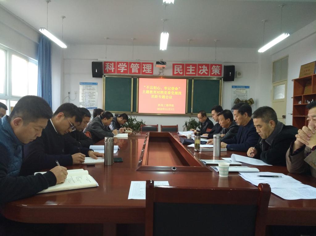 11月7日下午,机电工程学院在7号教学楼111会议室召开学院领导班子对照党章党规找差距专题会议。学校主题教育督导检查组第七组组长、副校长张勇到会指导。学院党员、职工参加会议,会议由学院党总支书记杨宇泽主持。